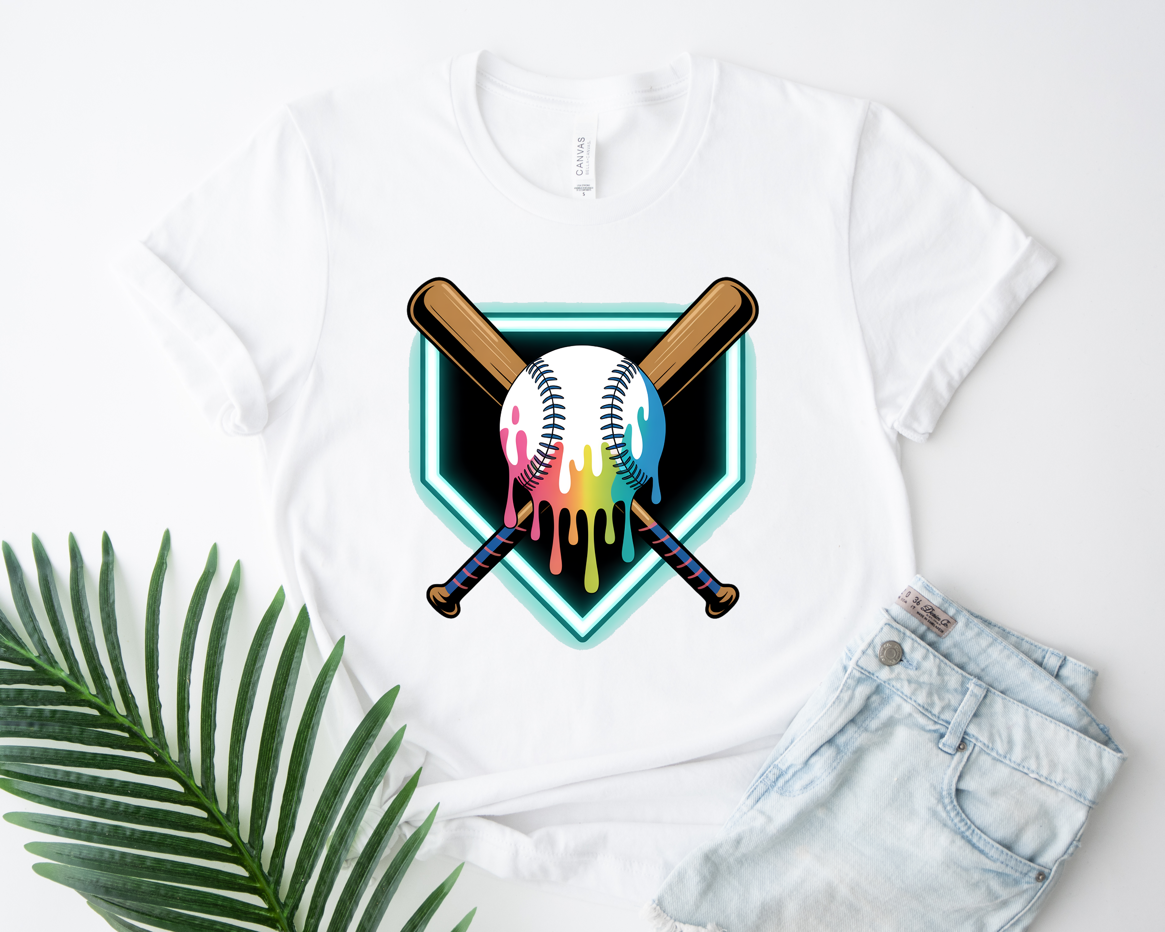 Colorful Baseball Bat and Ball